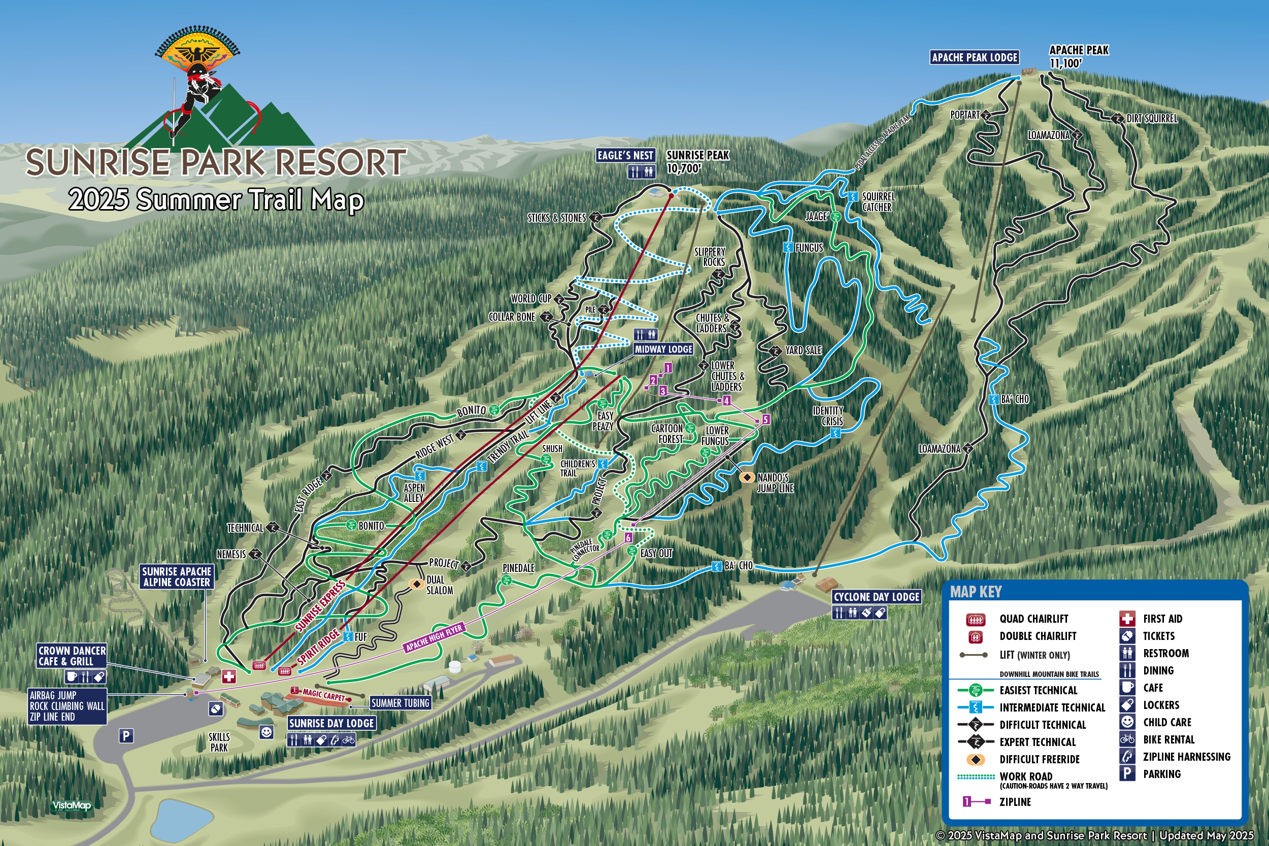 Summer Bike Park Season Passholders receive 10% off all food and beverage items at all dining locations at Sunrise Park Resort. Alcohol is excluded from this discount.